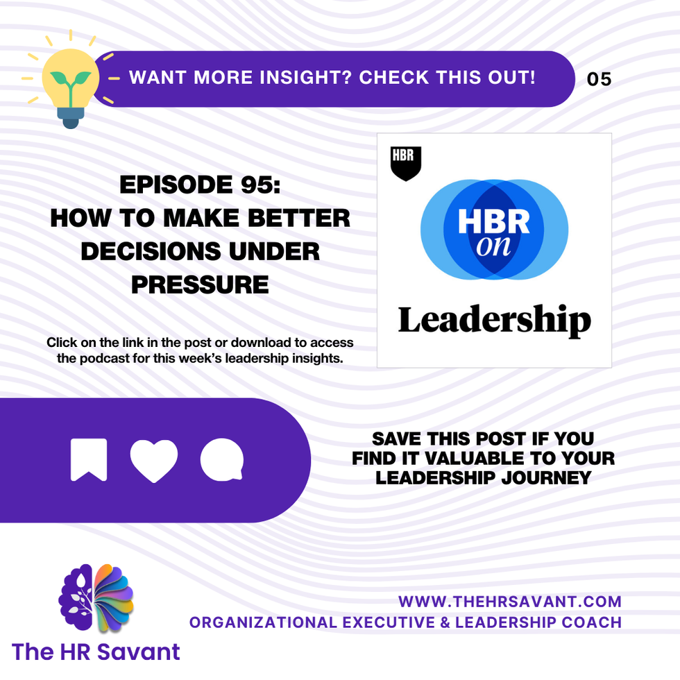 In today’s fast-paced, high-stakes world, decision-making isn’t just about acting instinctively. It is about being strategic, informed, and agile—especially when the pressure is on. In this week’s post, I am sharing insights on how to sharpen your decision-making framework, inspired by the HBR on Leadership and IdeaCast episode “How to Make Better Decisions Under Pressure”with Carol Kauffman. This episode offers powerful tools to help you navigate high-pressure decisions with clarity and confidence.